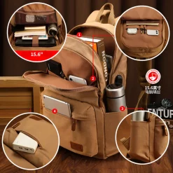- Spacious and versatile canvas backpack for outdoor activities and school.