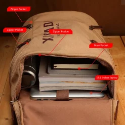 - Spacious and versatile canvas backpack for outdoor activities, school, and College