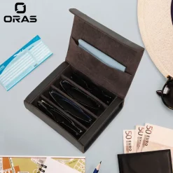 R1057 ORAS Genuine Leather Handmade 4Pcs Glasses Storage Box