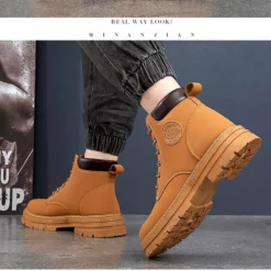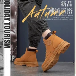 Z1016 Men's High-Top Boots: Martin Style, Yellow Work Boots