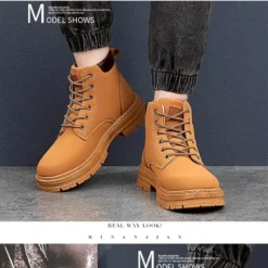 Be the first to review “Z1016 Men’s High-Top Boots: Martin Style, Yellow Work Boots”